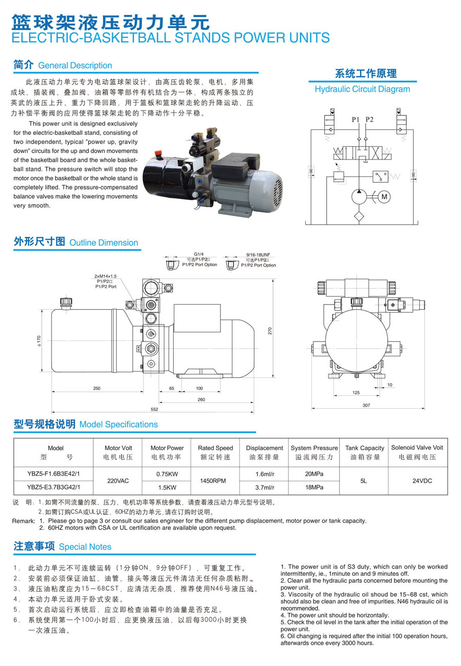 Basketball rack hydraulic power unit